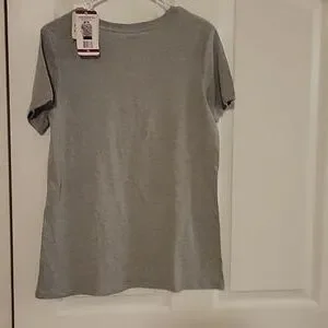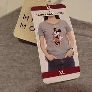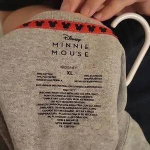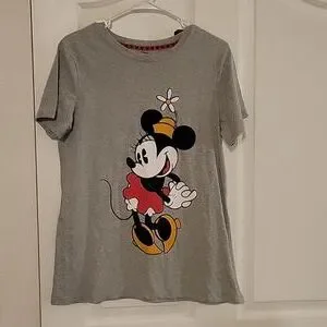 Girls Disney XL (10/12) T-shirt gary with black, red, white, and gold Minnie Mouse. 90% cotton with 10% polyester blend. New without all tags. Dog (1) friendly home.