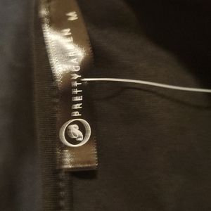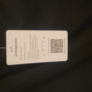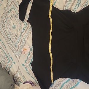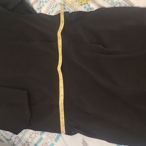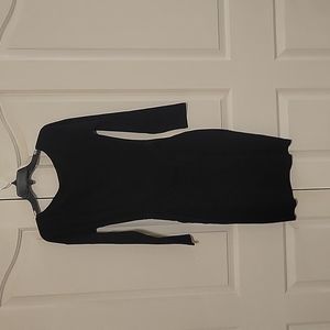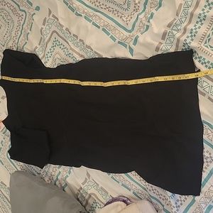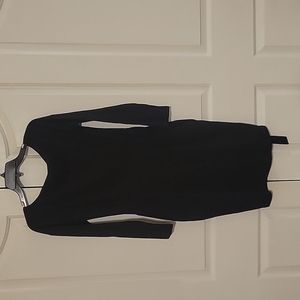 Women's black dress, with pockets, that tied in the back. It has some stretch. Pleated to accentuate waistline. Contempory but classic dress. New without all tags. Dog (1) friendly home.