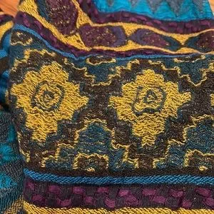 Beautiful shades of Teal, turquoise, purple, gold, on a black background