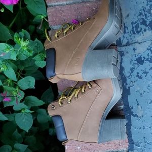 Dirty Laundry "Remix" nubuck stacked heel booties, size 9.5.