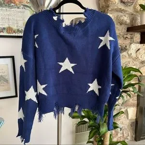 ZAFUL Cropped Frayed Stars Sweater