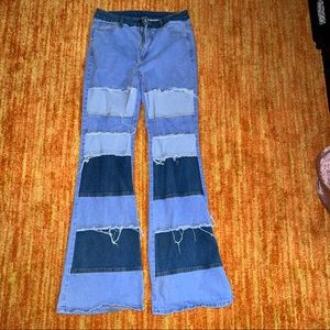Like new patch work SHEIN bell bottoms jeans. Size L (29/30)