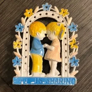 Vintage Retro Revere Mfg Metal Earring Holder Stand "Love Is Sharing"