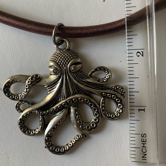 octopus pendant charm on shiny fabric brown cord choker