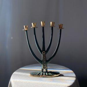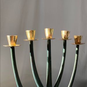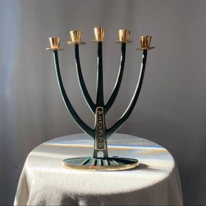 {SOLD} Mid-century Modern Brass Candelabra Menorah
