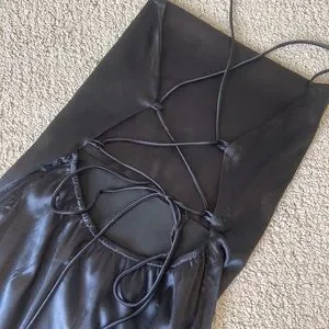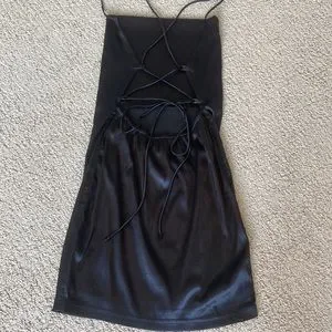New - never worn. I included a similar dress on a model so you can see how it fits on. The dress is difficult to photograph but so cute on! Criss cross detailing in the back that you can customize to your liking.