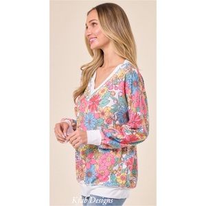 ❤️LAST 1! V Neck Floral Print Sweatshirt w/Contrast Neckline, Cuffs, and Band!