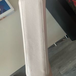 Staining on one of the sides. Not visible when bag is closed. Preowned condition so please review all photos. No rips or tears, no odor, minor wear on leather exterior throughout.
