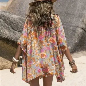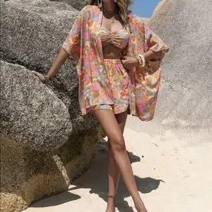 Boho Bohemian Tropical Paisley Floral Print Cami bra Top Kimono Shorts Set