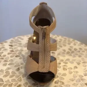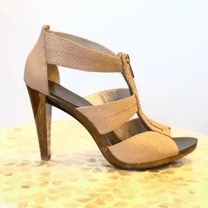 Michael Kors Bronze Metallic & Taupe Faux Snake Skin Pumps - Zipper Front - 8.5