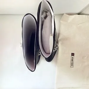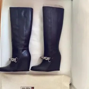 LIMITED EDITION Zara SRPLS Black Leather Tall Long Wedge Silver Chain