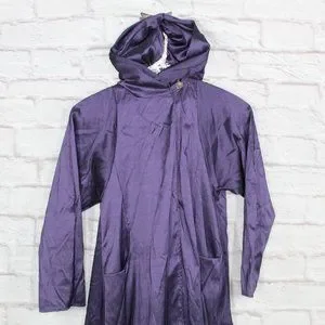 Maralyce Ferree Purple Nylon Hooded Full Length Long Raincoat Jacket Size M
