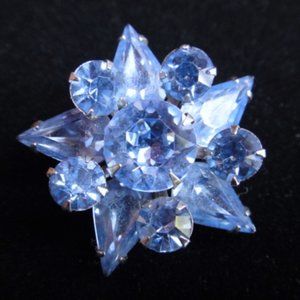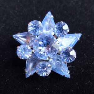 This is a vintage blue star pin about 1 1/2" in diameter. The stones are prong set, no markings. The metal is silver. This pin belonged to my Grandmother who proudly wore it to her Blue Star Mother's meetings after WW2! No flaws noted.