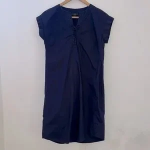 Cute Navy Cotton Shift Dress , cuffed sleeves, laces up front Size XXS