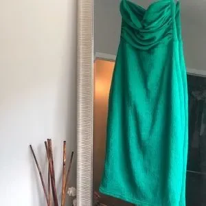 This dress is the most beautiful emerald green and hugs your curves like a body con dress would. I’ve never worn it because I just haven’t had the right occasion so it’s in great condition.