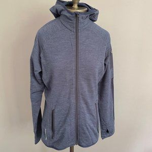 Midweight, full zip, hooded jacket / sweater / top by Icebreaker; 87% wool/10% nylon/3% elastane