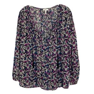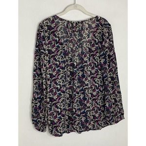 Joie Paisley 100% Silk Women’s Tassel Tie Keyhole Sheer Peasant Top Blouse Sz M