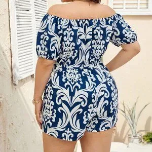 Plus Size Women's Romper 0XL Boho Off Shoulder White Blue Romper size 12-14us
