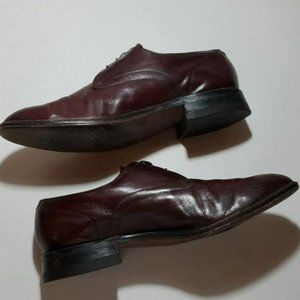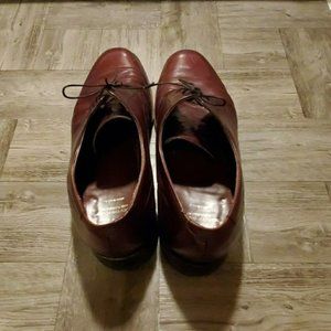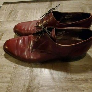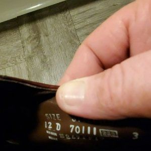 SELLING A GREAT PAIR OF MENS SIZE 12 D BROWN LEATHER DRESS SHOES, BLACK LACES HAS TYPICAL TOE CREASES AND WEAR. PLEASE FORWARD ANY QUESTIONS YOU MAY HAVE AND BUNDLE UP TO SAVE OR REASONABLE OFFERS CONSIDERED THANKS FOR LOOKING AND HAVE A GREAT DAY EVERYONE