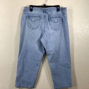 Anne Klein Denim Jeans Capris Pants Blue 14 Average Flap Back Pockets