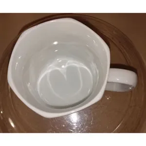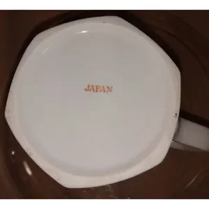 This is a lovely piece of vintage kitchenware marked JAPAN, with no brand mark. Machine printed floral design remains bright and vivid. Hexagonal shaped mug shows no sign of prior use.