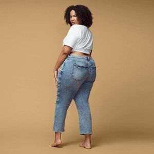 Lifting, conturing straight cut jean with flat tummy tech and a gap-proof waistband in sculpting denim -