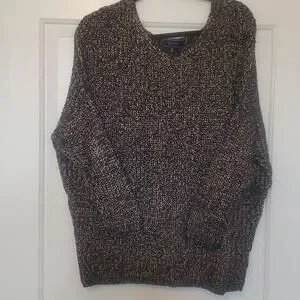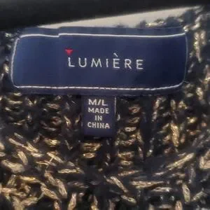 Lumiere Slouchy Knit Sweater Navy and Metallic Gold Sz M/L