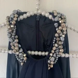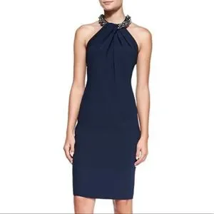 Carmen Marc Valvo Beaded-Neck Toga Dress