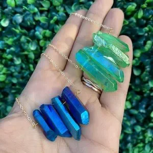 Aurora Quartz Crystal Genuine Gemstone Necklace Gold Multi Color Boho Pendant