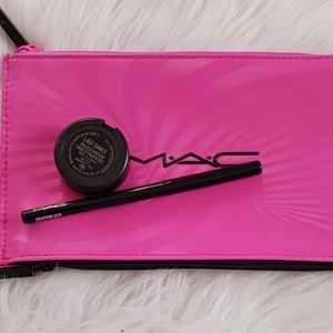 New MAC Cosmetics dazzleshadow eyeshadow in "Last Dance" (1 G) and technakohl liner in "Black" (0.35gr), all in a pink MAC makeup bag 8" x 5", dual zipper. NIB- new in bag