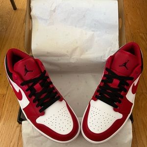 Brand New Air Jordan 1 Low. Color is White, Black, Gym Red. Size is 9. Brand new in box. Classic.