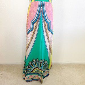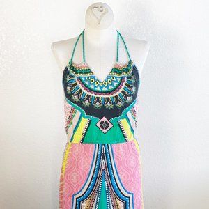 Flying Tomato Colorful Print Halter Maxi Dress L
