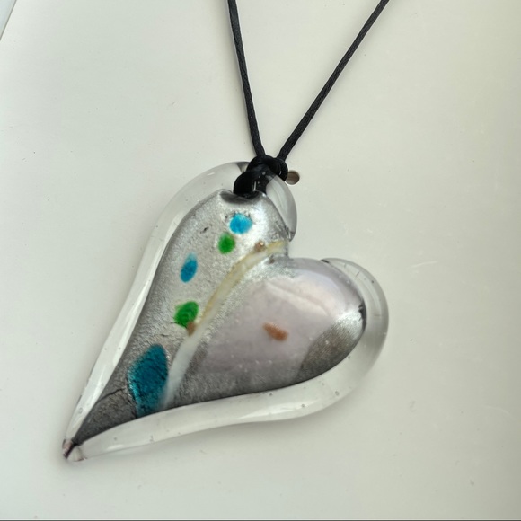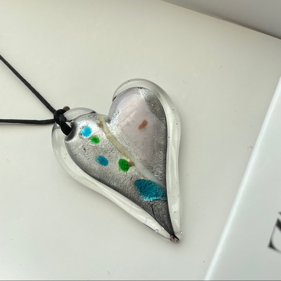 Zara Glass Heart Necklace Pendant on Cord