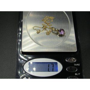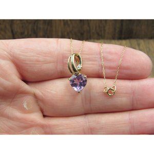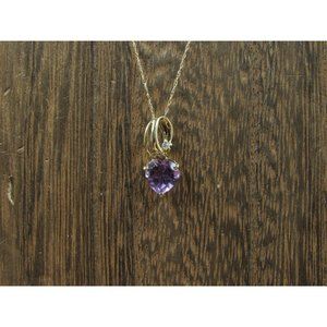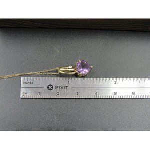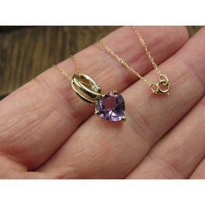 18" 10K Gold CZ Accent Purple Amethyst Heart Necklace Vintage Estate Wedding