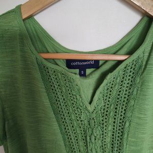 Cottonworld grass green asymmetric half sleeves top blouse unique colour