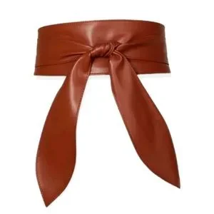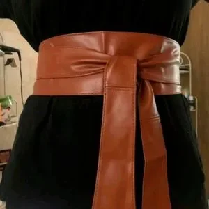 Plus size wide straps brown self tie waist corset cinch vegan leather obi wrap belt, new