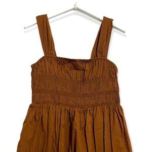 NWT Staud Ida Smocked Cotton Midi Dress, Color Tan, Size L