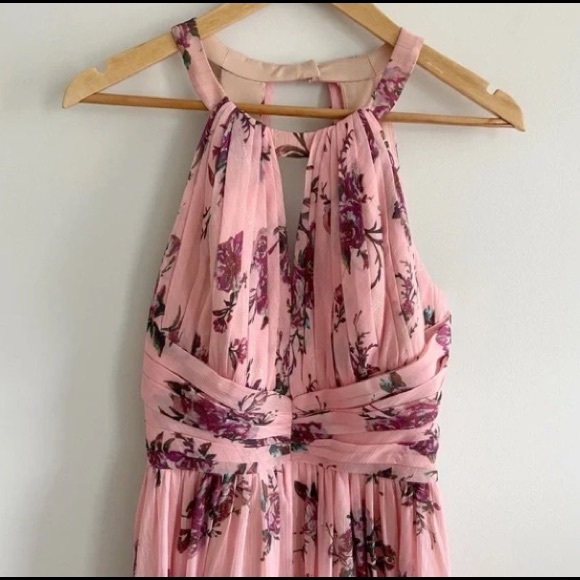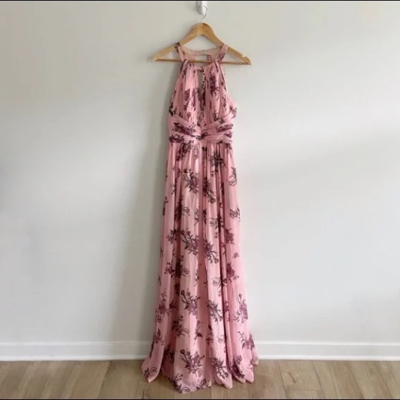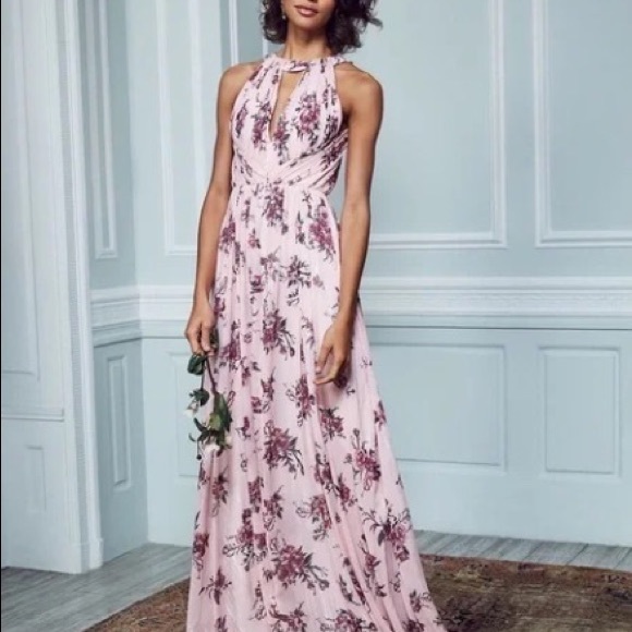 Marchesa Notte Carrara Floral Printed Halter Lurex Chiffon Bridesmaid Maxi Dress