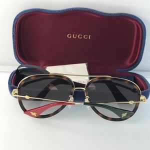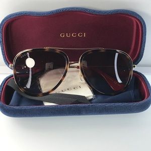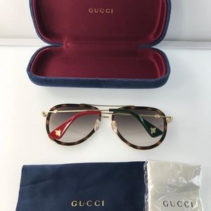 Gucci Sunglasses. Color code: 012. Size: 57. Lens Width: 57 mm. Lens Bridge: 17 mm. Arm Length: 140 mm. 100% UV protection. Non-Polarized. Frame Material: Metal. Frame Color: Gold, Tortoise. Lenses Type: Brown Gradient. UPC/EAN code: 889652127835. Gucci Brown Gradient Sunglasses GG0062S 012 57.