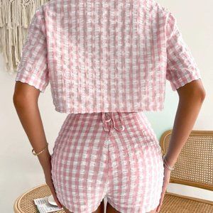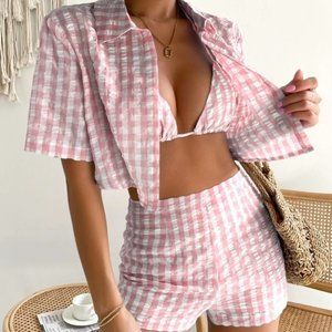 PINK 3 PIECE GINGHAM SUMMER SET STREETWEAR BEACHY VACAY