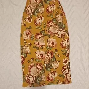 URBAN ROSE MAXI DRESS MUSTARD WITH FLORAL PRINT SIZE LG NWOT
