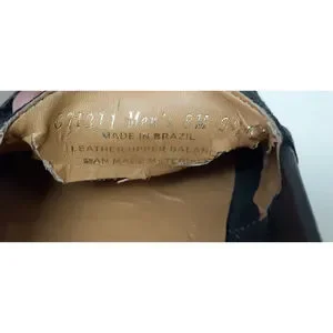 Very good heels, soles, uppers, insoles, and liner. There is some cracking on underside of left upper at top arch (where size/model are printed). Please see all photos.
