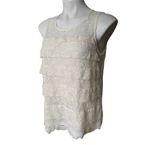 Ann Taylor Off White Tiered Lace Sleeveless Top