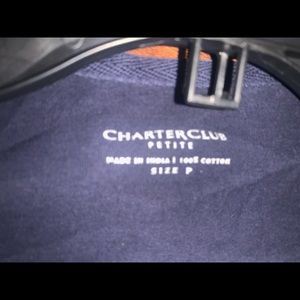 Adult charter club Petite 3/4 sleeve navy blue Top