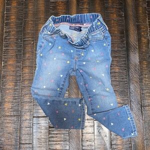 Gap 3T toddler jeggings, super cute with heart print. I do not believe they were worn, just washed once.
