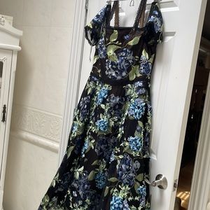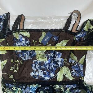 Design Details: Cold-Shoulder Sleeves, Floral Embroidered Detailing, Lace Trim, Flocked Tulle