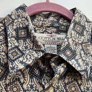 Brocade Stamp Flannel Cotton Men’s Shirt L