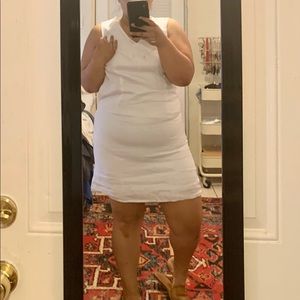 Bloomingdale’s: Vintage White Linen Mini Dress with Lining and Zipper (size 12)