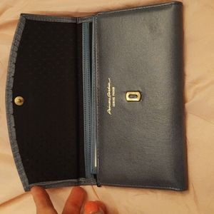Vintage Princess Gardner wallet in like-new condition. All original papers inside. Made from leather pigskin. Coin purse on back. Gray/bluish color.