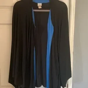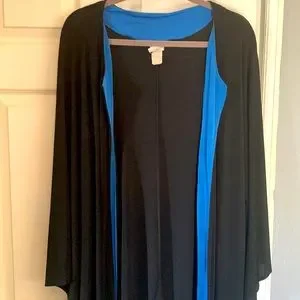 Machine washable easy care polyester spandex approximately 33/34” long ample sleeves size 1 X has blue details when open EUC